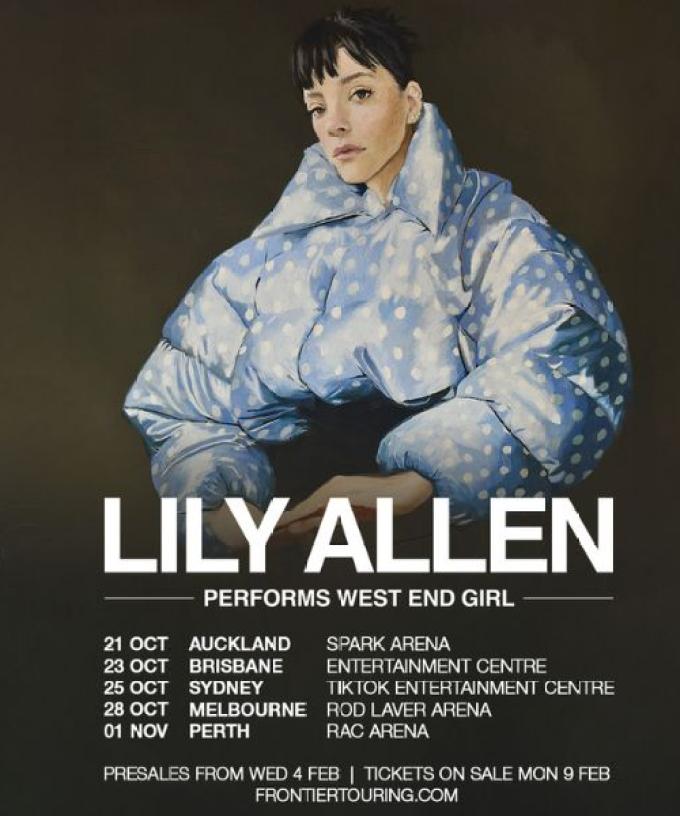 Due to overwhelming presale ticket demand, Lily Allen announces second and final Sydney and Melbourne shows on her Australian & New Zealand Lily Allen performs West End Girl tour for October & November 2026.