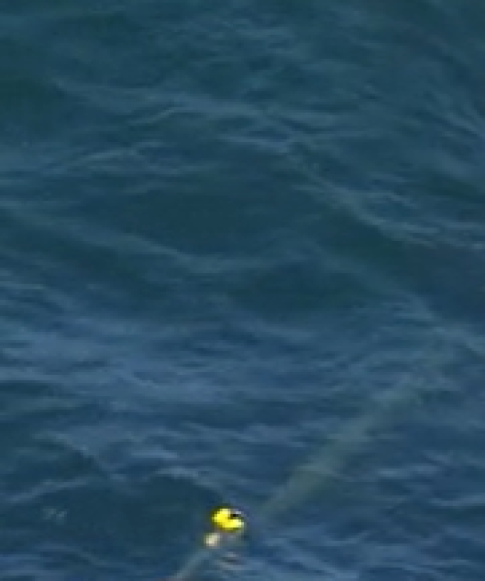 Sea World teams are currently out in the water trying to free the animal from the netting, while its distressed mother swims nearby.