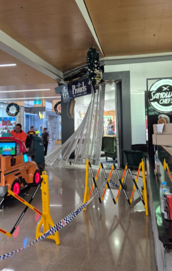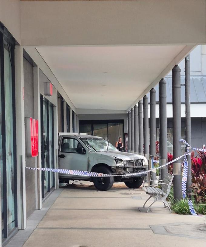 A ute was driven into The Pines shopping centre on KP McGrath Drive around 12.03am on Friday.