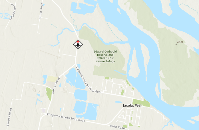 The aircraft came down into thick busland near an airfield off Stapylton Jacobs Well Road at Jacobs Well just before 6am on Tuesday.