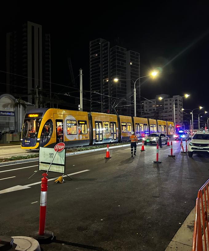 The first tram was successfully given a run on the completed stretch between Broadbeach South and Miami North.