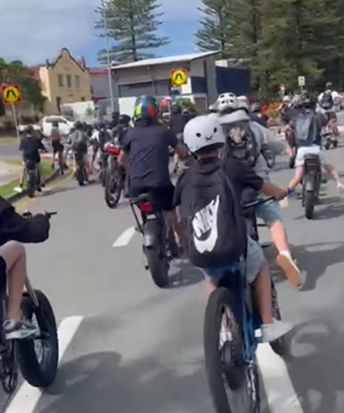 It comes after another mass gathering of e-bike riders on the weekend, which forced parents and kids to flee popular Pizzey Park in Miami.
