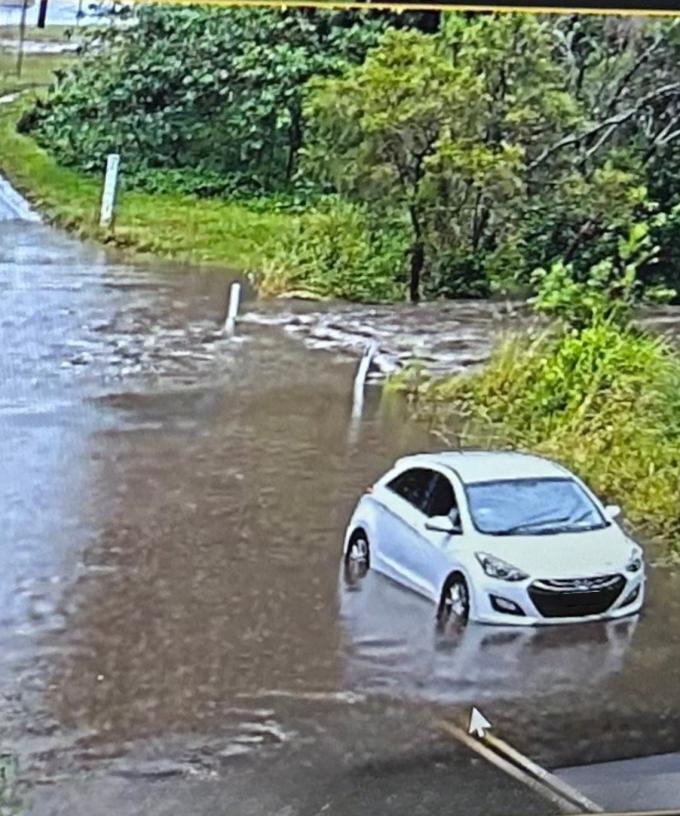 The warning comes after a vehicle attempted to drive through the flooded Hardys Road in Mudgeeraba around 9am on Friday before stalling and getting stuck, sparking a rescue operation.