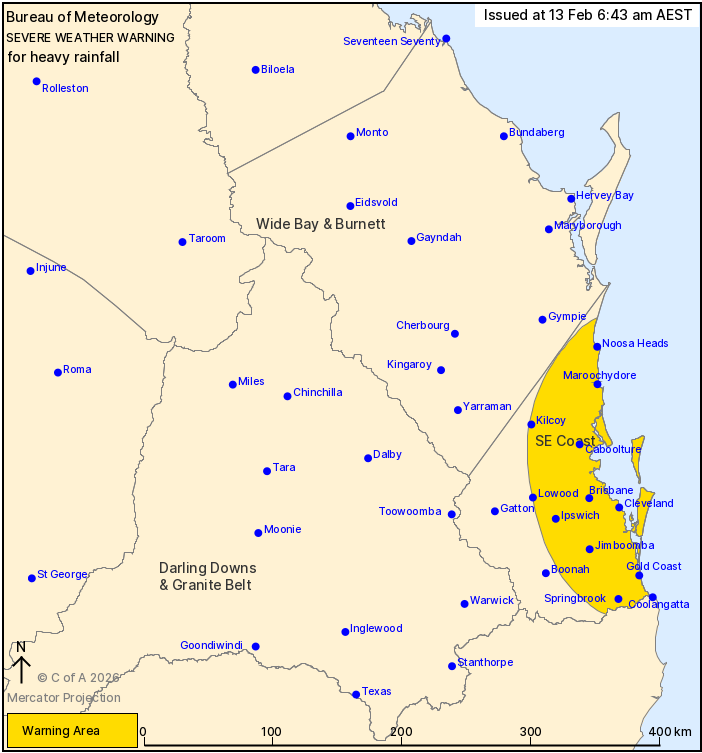 EARLIER @ 1:30PM, Thursday, February 12 | A severe weather warning has now been issued for the Gold Coast ahead of several days of heavy rain, due to begin tonight.