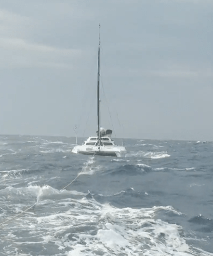 The rescue vessel reached the catamaran just before 7.30am, before checking on the welfare of the two people on board.
